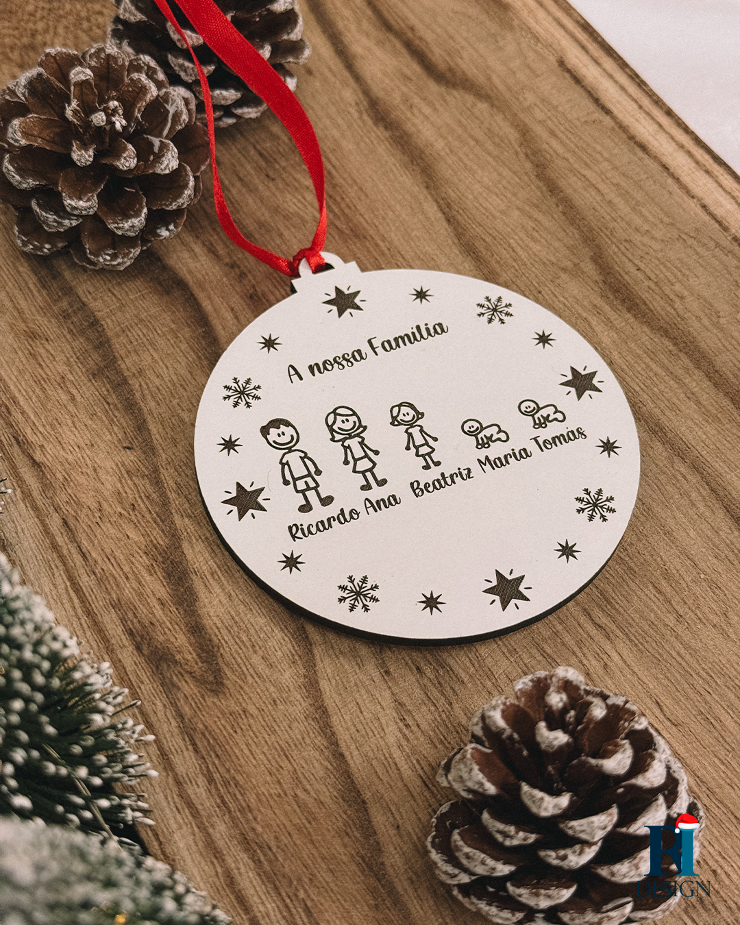 No campo "Personalização" indicar o nome dos membros da família bem como se são crianças, adultos, bebés, cães, gatos, tartarugas, etc.