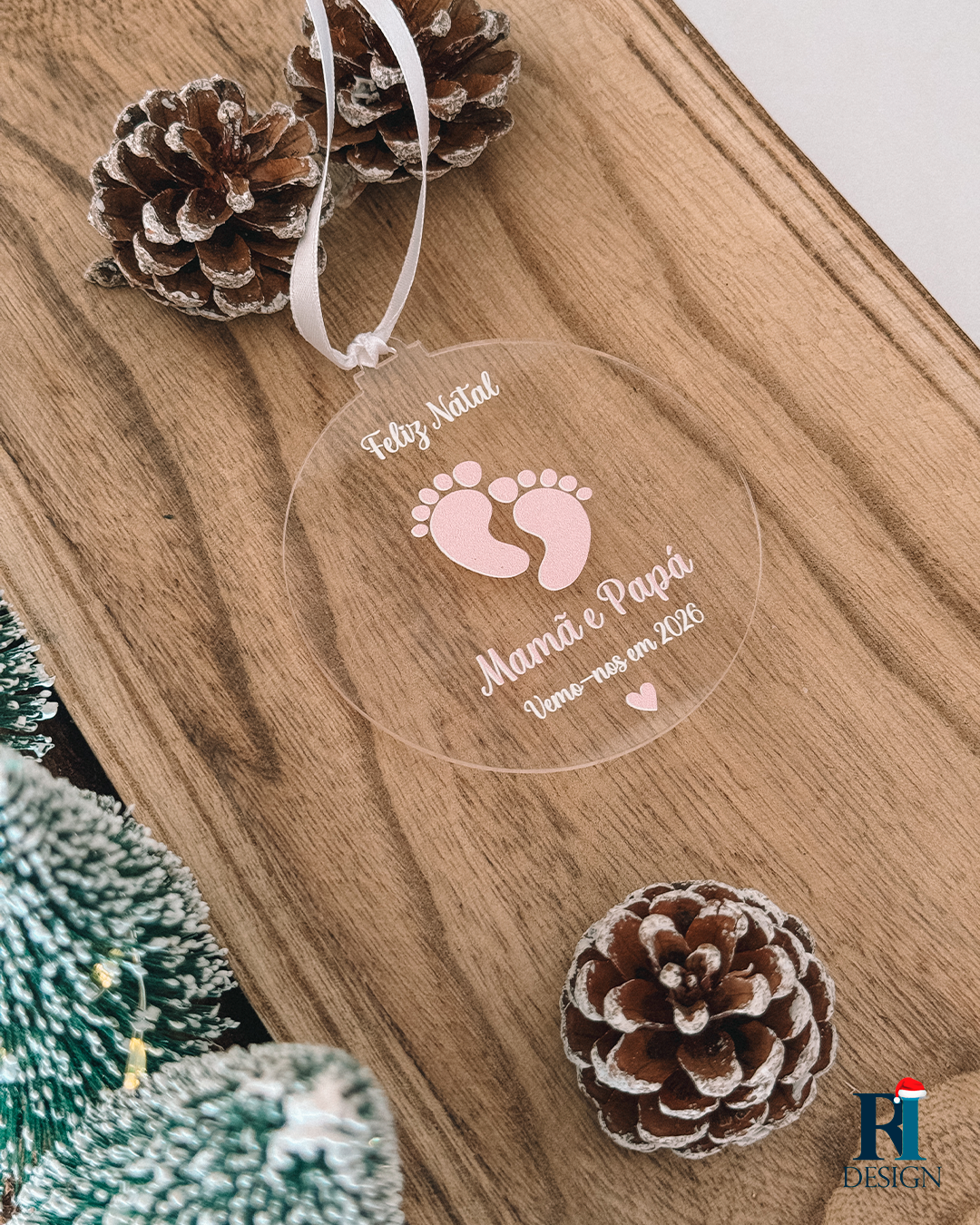 No campo "Personalização" indicar os dados a colocar (avós, avô, avó, pai, etc e caso deseje o nome do bebé e ano).